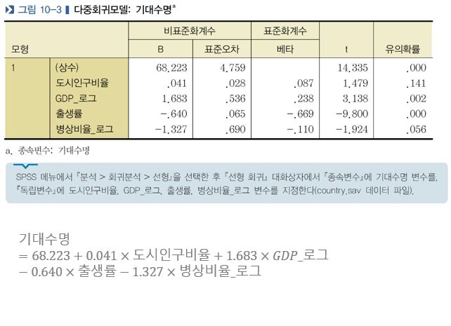 변수 간의 비교를 위해서는 표준화 계수(standardized coefficient)인 베타(beta)를 사용한다.