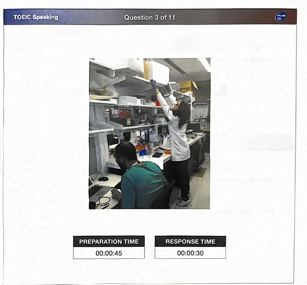 ※ Tip : taken in a lab : 연구실에서 찍은, reaching for a box : 상자를 향해 손을 뻗은