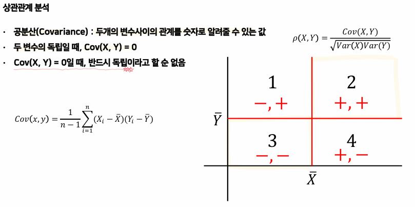 - 두 변수의 독립일 때, Cov(X, Y) = 0