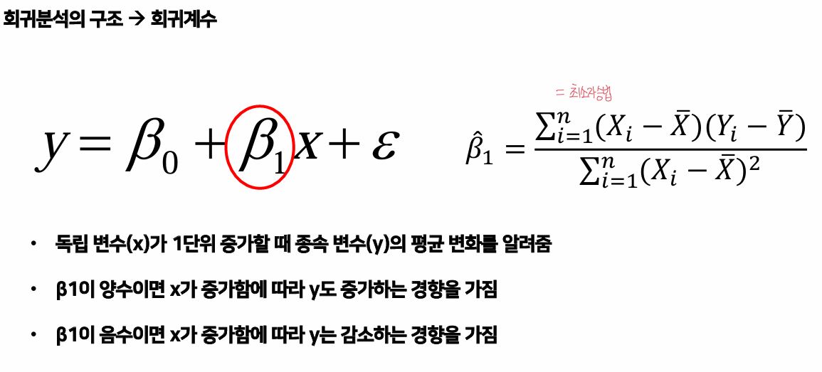 - 양수이면 독립변수가 증가할 때, 종속변수도 증가한다.