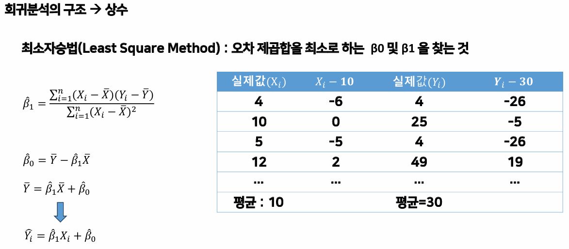- 회귀분석은 미리 얘기하자면, 공분산 / 분산 식과 비슷하다.