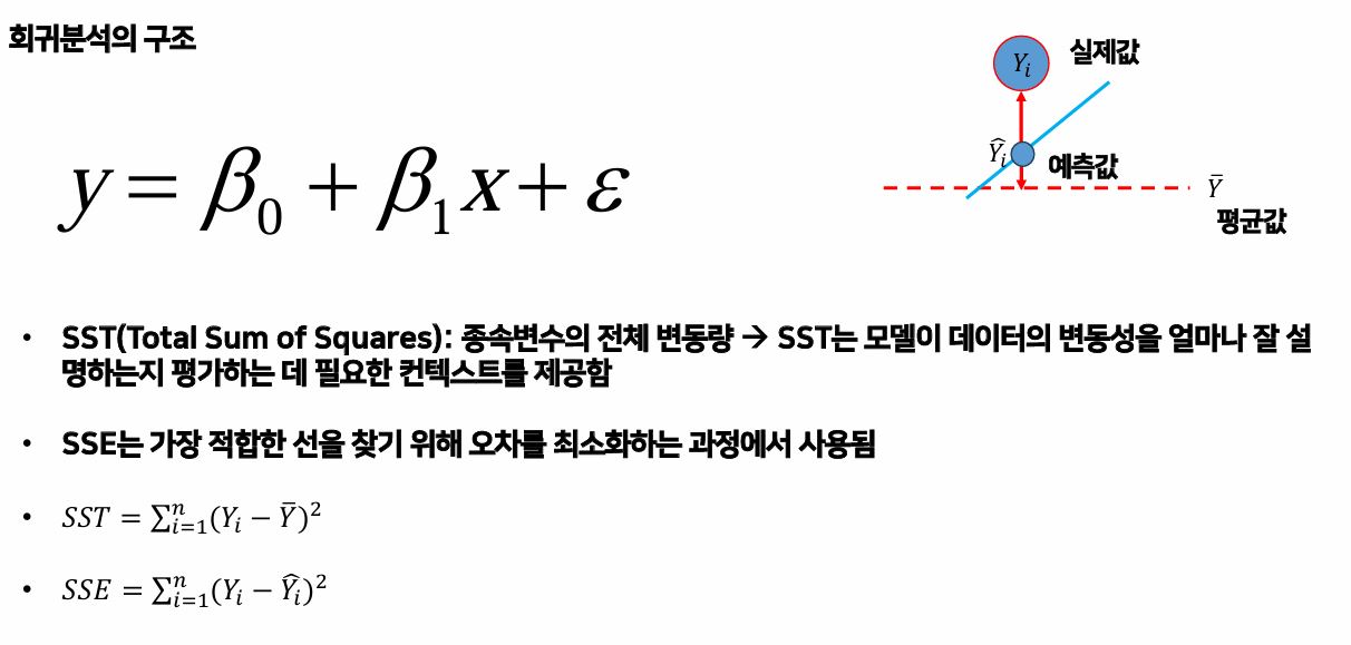 - 회귀분석 → 종속 변수와 하나 이상의 독립 변수 간의 관계를 모델링함