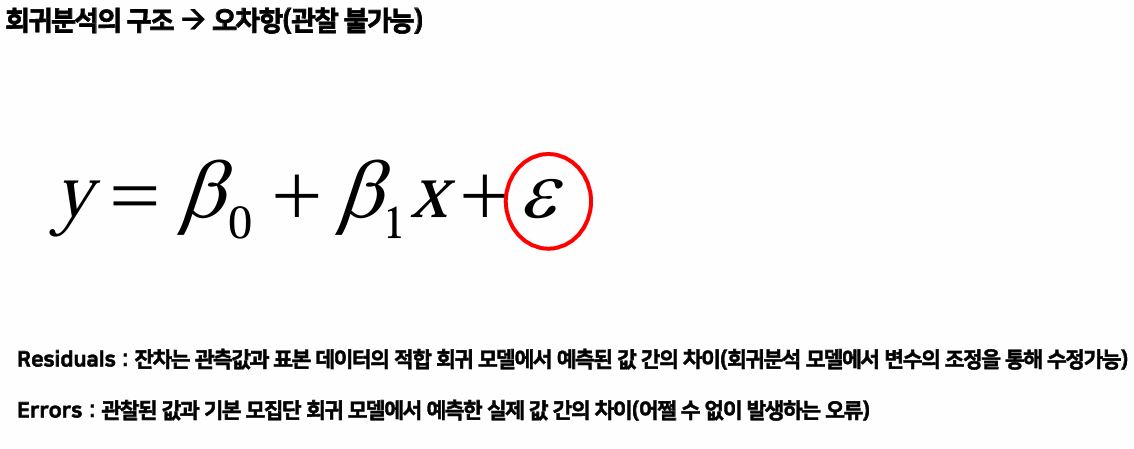 회귀분석의 구조 → 오차항 (관찰 불가능)