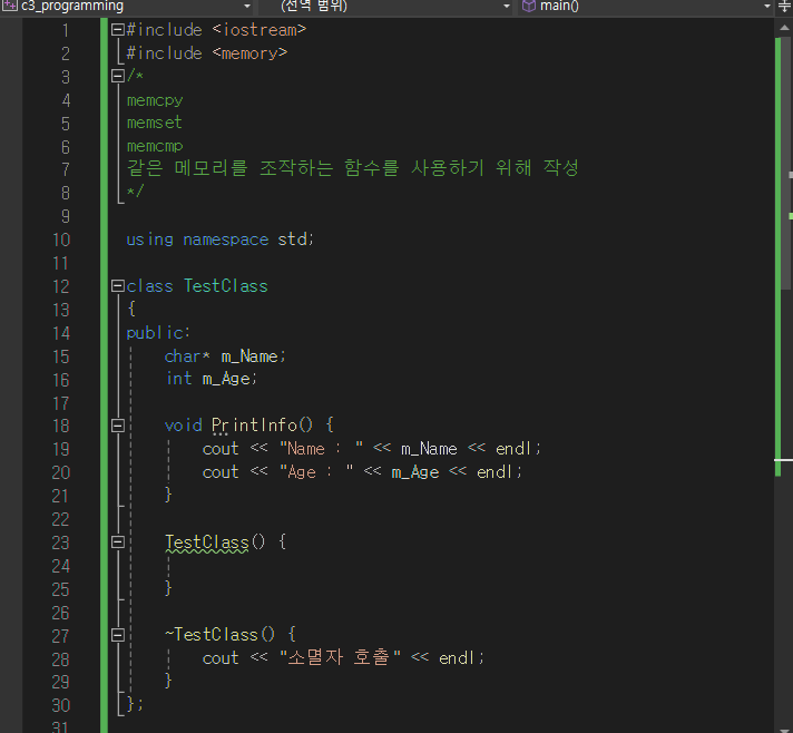 오늘 학원 수업에서는 [ 클래스 ] 에 대해 실습을 먼저 해보았다. 문제는 이렇게 대강 주어졌는데 내가 이해한 것과 풀이를 보고나서 정답 풀이랑은 조금 달랐다. ※ 기본 생성자를 통해 입력을 받기 전, 안에 들어갈 값이 무엇인지 모르기 때문에 공간만 할당해준 것이고 그 아래에 초기 생성자를 통해 입력받은 값을 넣어주기! (동적할당 개념과는 다른 개념이다.) >>> 추가적 공부가 필요함 ㅠ__ㅠ 참고 자료 : [C++ 기본 공부정리] 14-4. OOP - 생성자(constructor) (tistory.com) [C++ 기본 공부정리] 14-4. OOP - 생성자(constructor) 공부 내용을 정리하는 목적 이므로 참고용으로만 읽어 주시기 바랍니다. 틀린 부분에 대한 지적은 감사합니다. 1. 생성자(c..