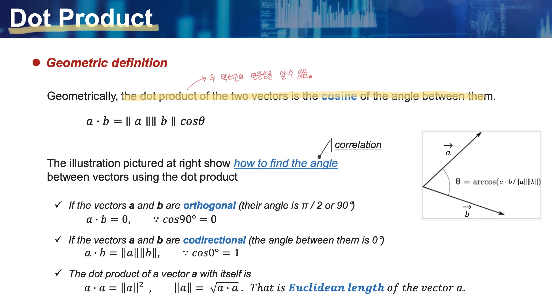 Dot Product : 두 벡터간의 연관성을 알 수 있다.