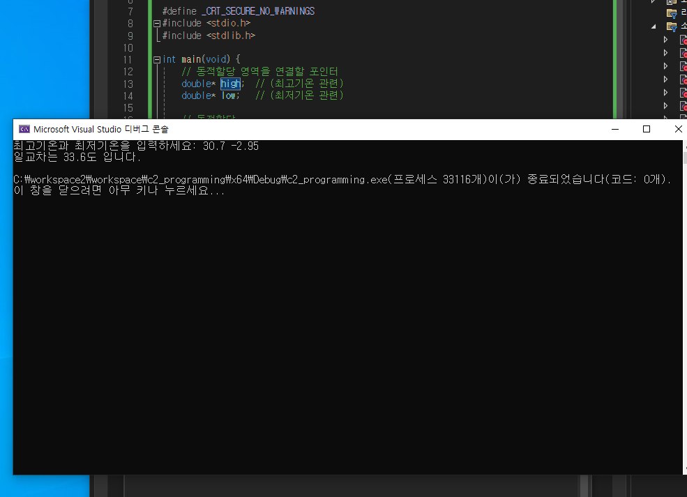 printf("일교차는 %.1lf도 입니다. \n", (*high) - (*low)); // 일교차 계산 출력