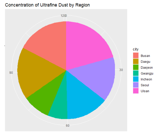 - 파이차트(pie Chart) : 원 그래프는 전체에 대한 각 부분의 비율을 부채꼴 모양으로 백분율로 나타낸 그래프로 전체에서 차지하는 비율을 나타내며, 비율을 한눈에 볼 수 있다는 장점이 있다. (KEY POINT : 비율)