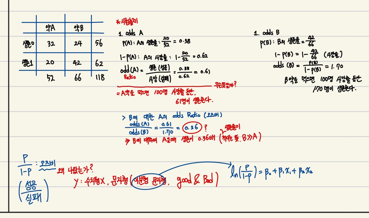 [ 6주차의 핵심 : 오즈비, 로지스틱 회귀 분석 ]