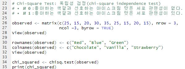 - 2) 독립성 검정(chi-square independence test) ➔ 범주형 변수가 여러 개인 경우에 사용하는 분석방법